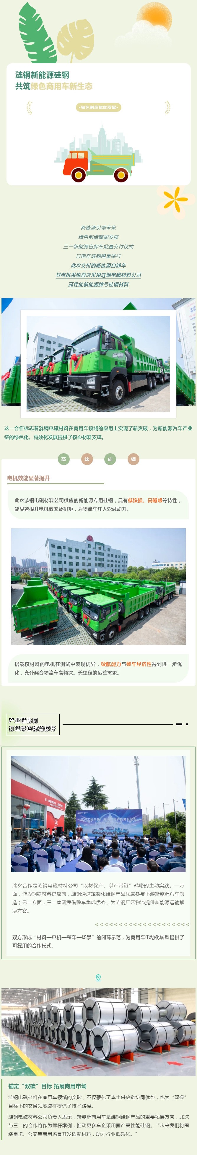 漣鋼電磁材料新能源硅鋼助力三一新能源自卸車,共筑綠色商用車新生態(tài)!